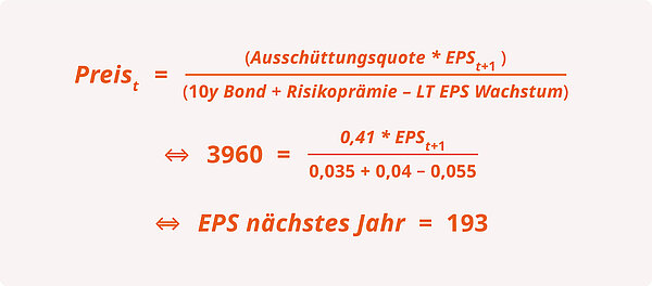 Unterstellt man ein klassisches Dividend-Discount Model (Gordon Growth-Modell), so zeigt sich dies auch numerisch für den S&P 500.